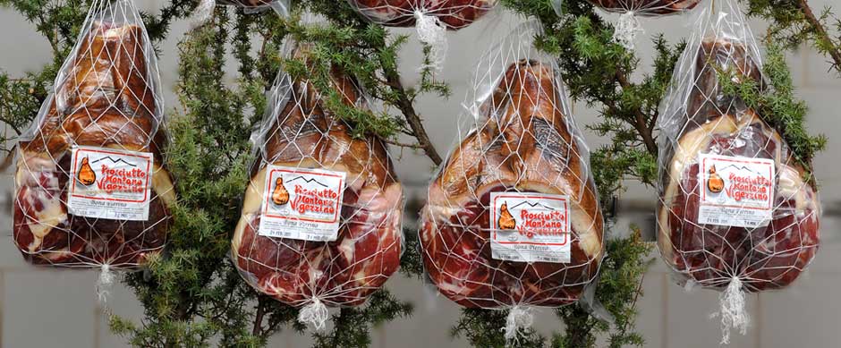 I prosciutti vengono così passati alla fase di salatura che viene effettuata a secco con sale marino ed una miscela di spezie naturali tipici della Valle Vigezzo. I prosciutti non sono tutti uguali, ognuno necessita della giusta quantità di sale e solo l´esperienza del nostro salatore ne garantisce la perfetta riuscita con un gusto particolare e giusta sapidita'.